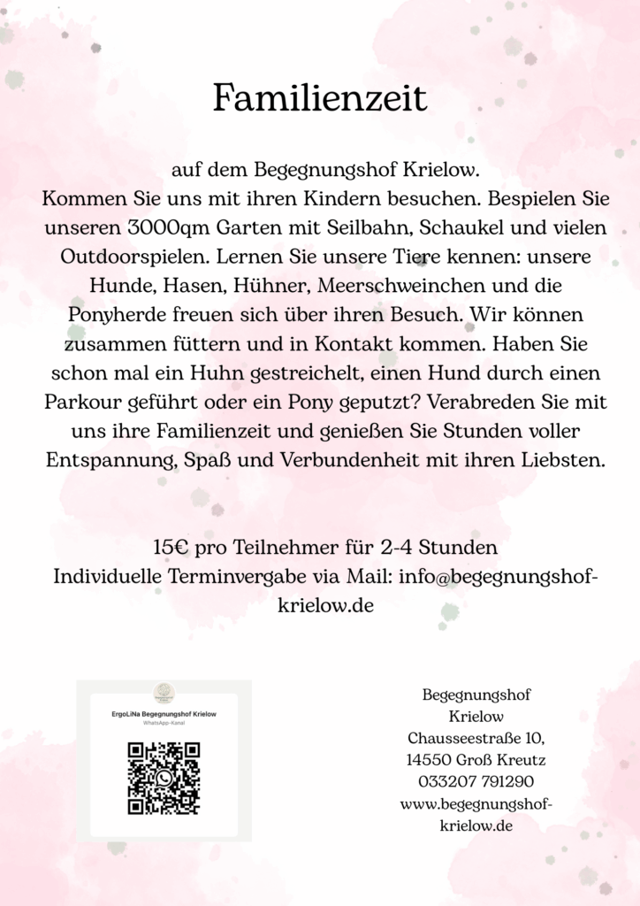 Bei Interesse rufen Sie an oder schreiben uns eine Email. Genaue Termine und Kosten werden dann telefonisch abgesprochen.